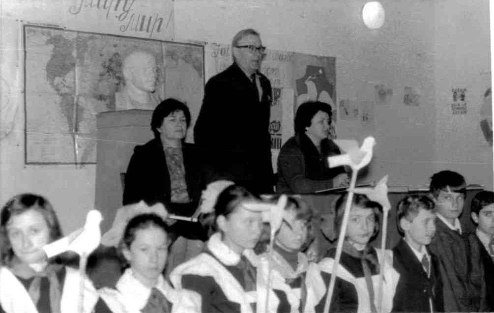 70-ті роки. Збір піонерського загону. Виступає колишній військовополонений Добро вольський Г.С., Вчителі Руссол М.Ю. та Будько З.Я.